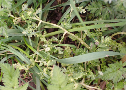 The fungus Protomyces macrosporus causes galls on stems or leaf of various umbellifers including Ground-elder, Hemlock Water-dropwort, Angelica, Lesser Water-parsnip and Cow Parsley. The galls are yellow-white irregular swellings. On some hosts these are sometimes elongated along the veins and midrib, and the leaf-blade may be distorted. See Redfern and Shirley (2023) for more information on each host.
