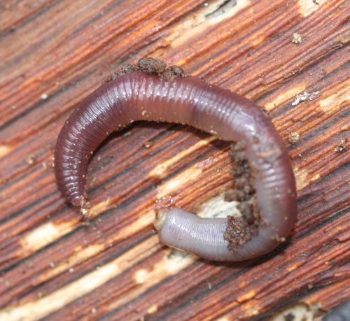 Typical size of adult is 6.5cm. The upper surface of the body, from the first segment to the saddle, is usually entirely dark in colour (reddish brown). It Sometimes flattens its tail into a paddle shape.It has a tanylobic head, closely paired setae and the clitellum on segments 26/27 to 32.