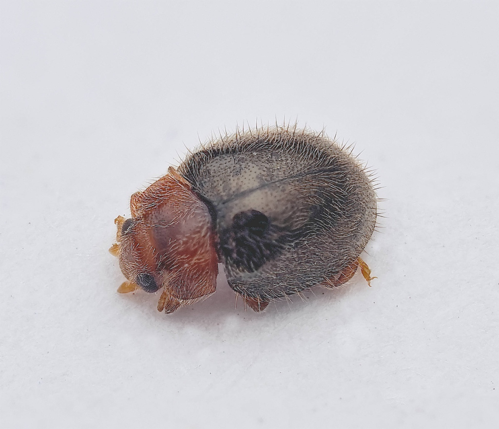 Rhyzobius lophanthae is a species native to Australia which was first recorded in the UK (London) in 2008. Widely intoduced workwide as horticultural biocontrol for scale insects.