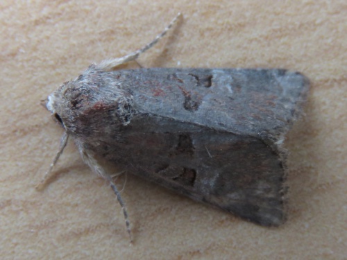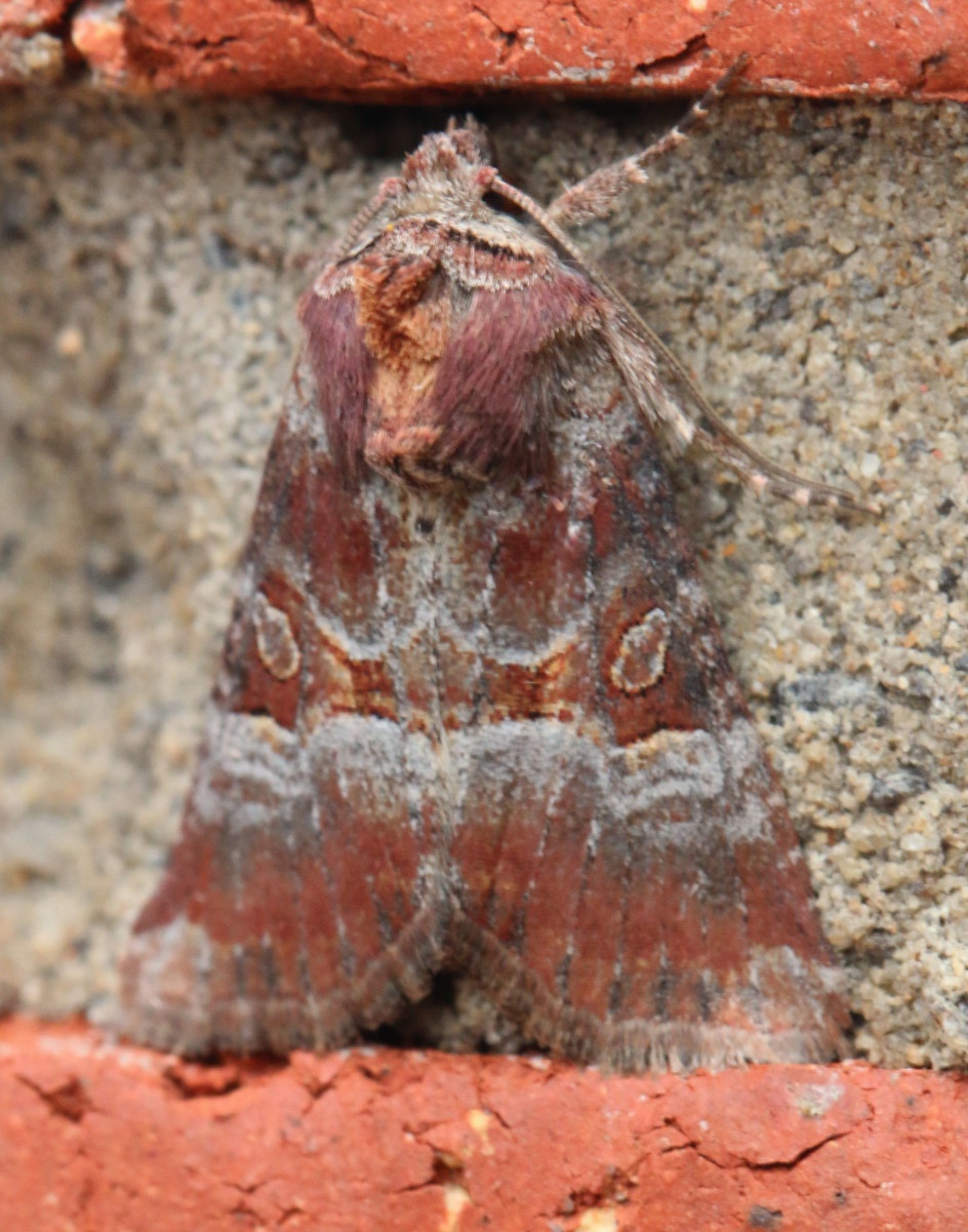 Wingspan 25 to 30 mm. Although displaying some variation, this species tends to be less ochreous than similar species, appearing generally greyer, with usually some rosy or purplish tint.