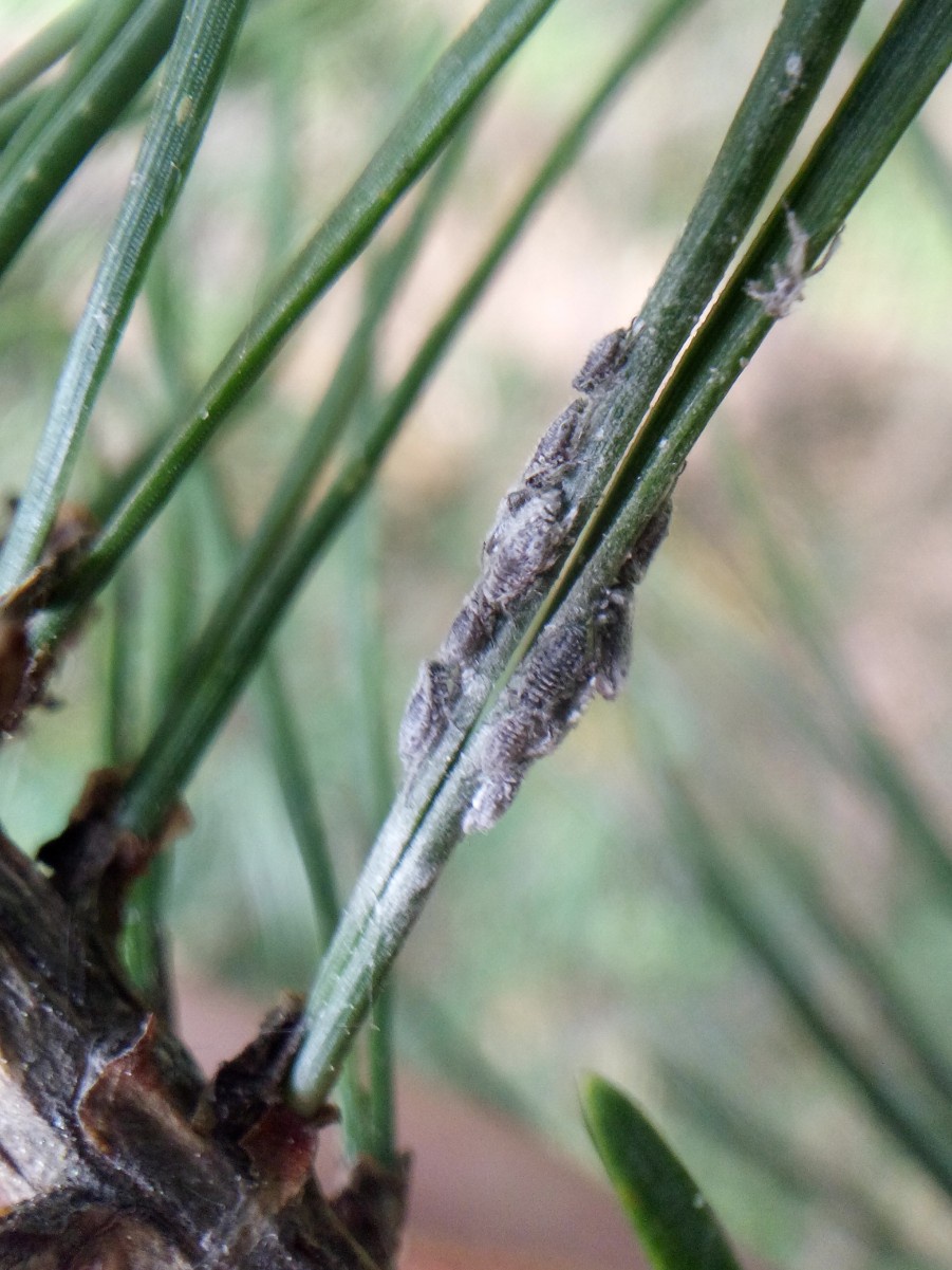 Oviparae and alate males occur in October-December, but in years with mild winters colonies may persist through to the next year. Apterae of Schizolachnus pineti can be found on pines all year round providing the winter is not too severe.