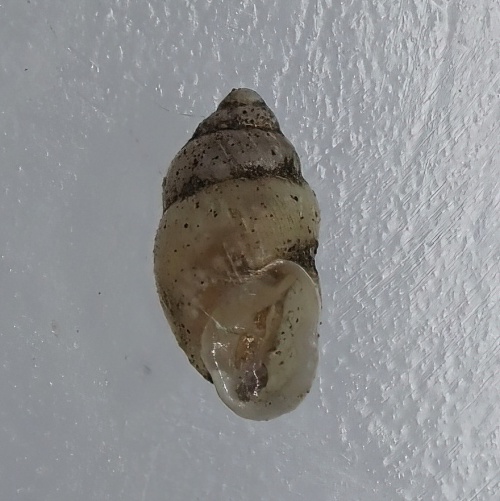 At just 1.5mm in height, this tiny snail is easily over-looked. The adult shell has just four whorls in a conical shape, with the lowest whorl being the broadest. It is very pale in colour. The mouth has a thickened lip and there are three internal teeth, though not all are immediately obvious. Faint radial ribs may be seen under magnification.