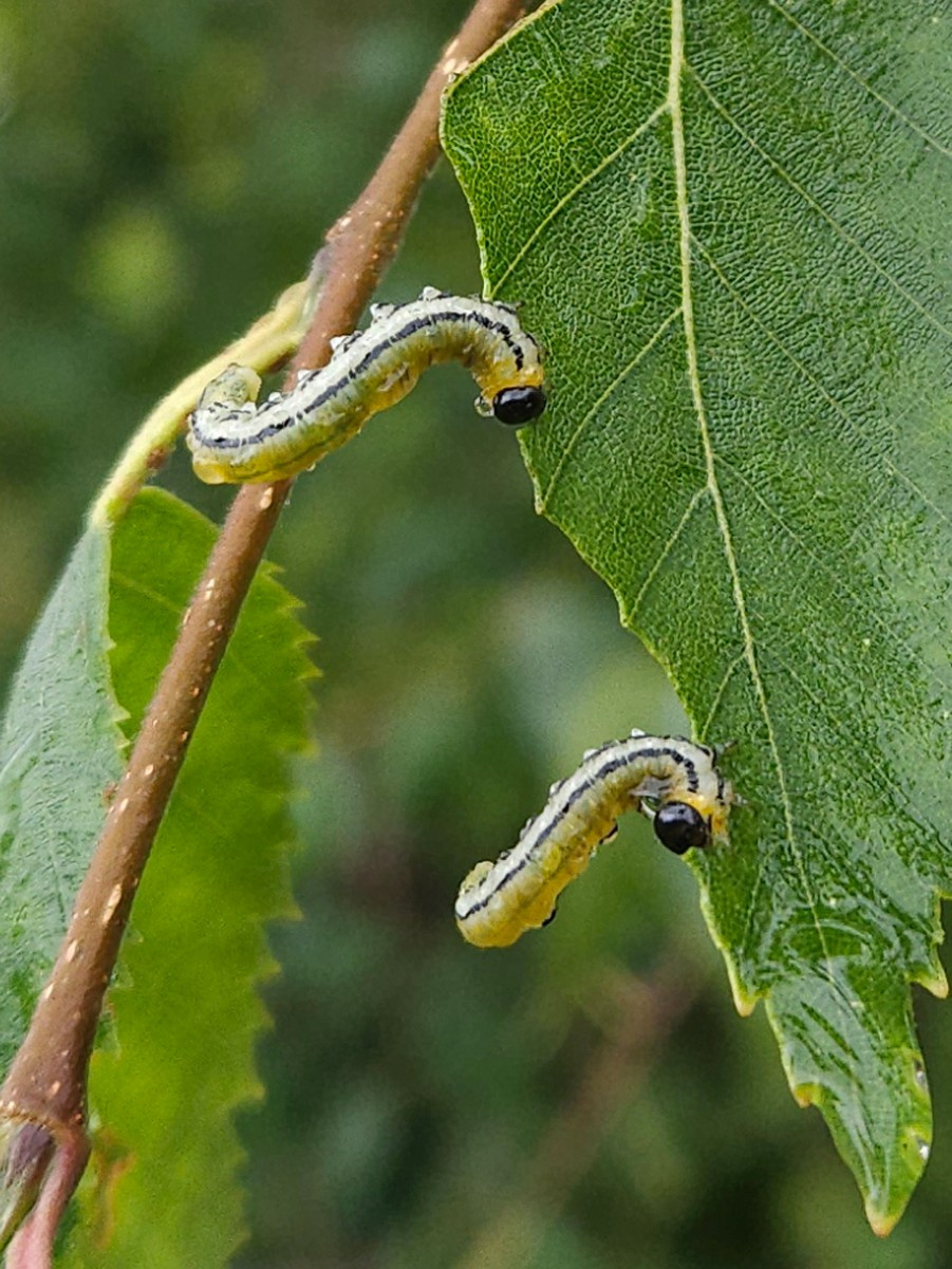 The larvae of the sawfly Nematus septentrionalis feed on a number of trees including Birch.
