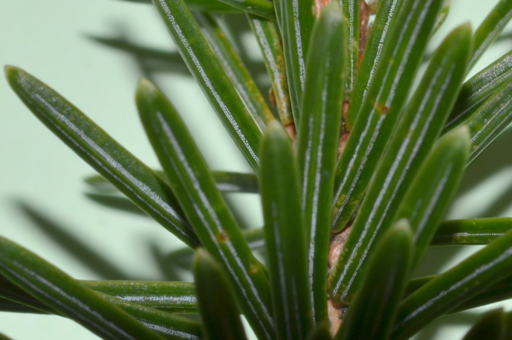 Photos of cones and details of underside of leaves
