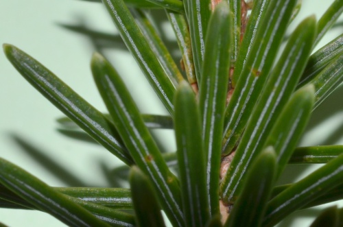 Leaves flattened, two broad whitish stripes on underside; cones 6-10cm