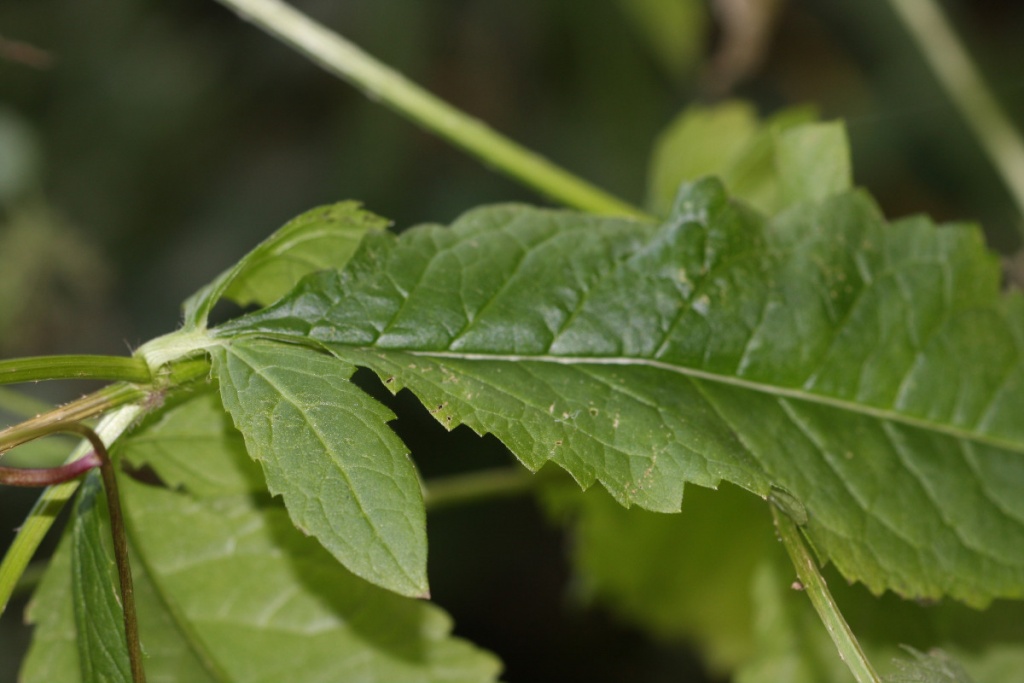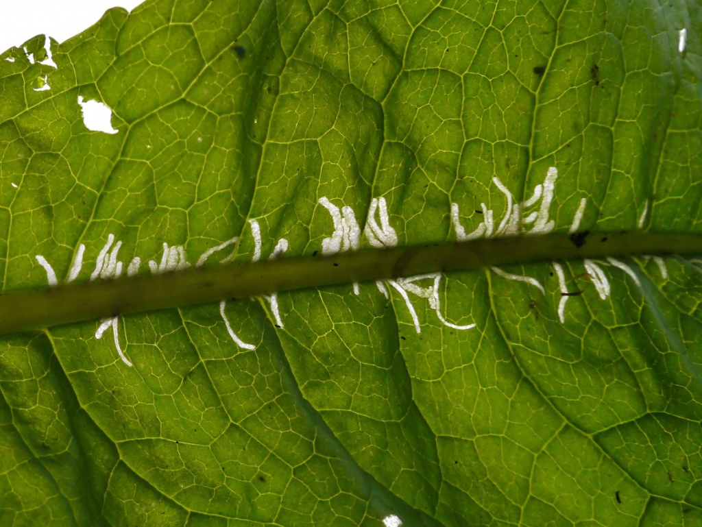 The larvae of the Agromyzid fly Chromatomyia ramosa mine the leaves of Teasel and Scabious species. They feed along the midrib but make short, narrow corridors into the leaf.