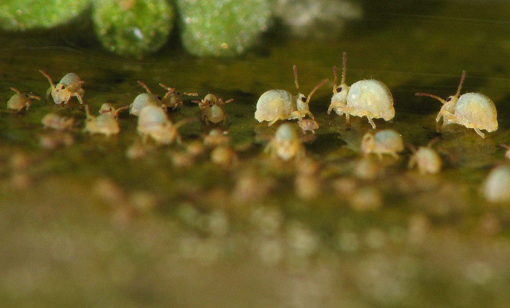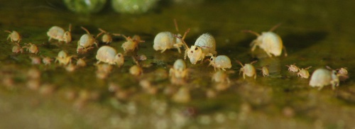 Adults up to 0.5mm, females larger than males. Yellowish with some blue pigmentation on the dorsal side of the body. In Sminthurides aquaticus, the fourth antennal segment in the female is not divided into subsegments (c.f. other Sminthurides).