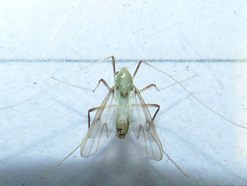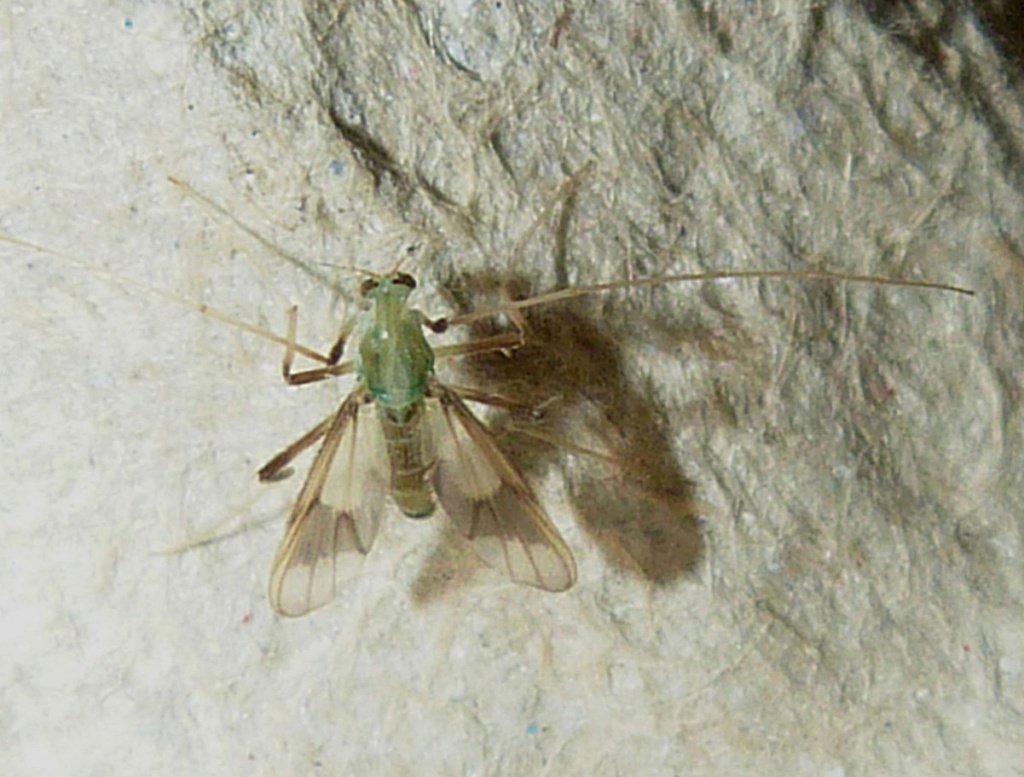 Body length about 6 mm.  The pale green colouration, combined with the dark band across the wing is distinctive.