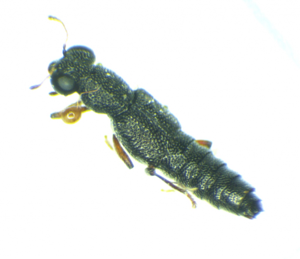 Many Stenus species are similar and microscopic examination is needed.