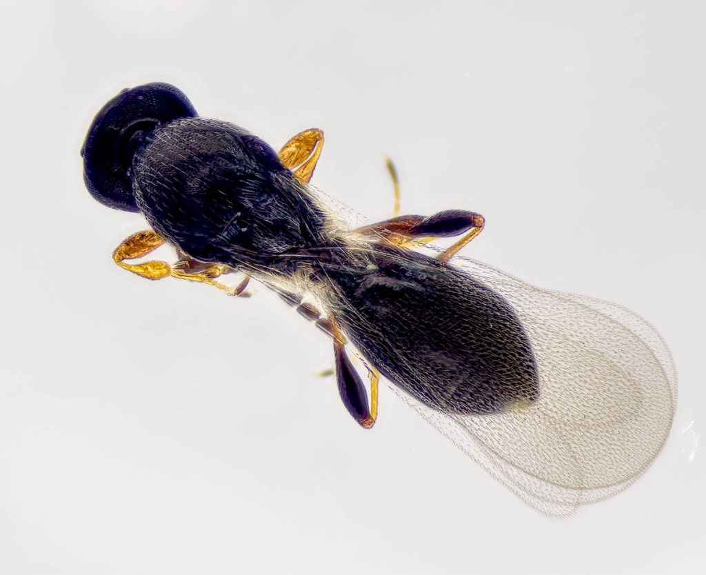 Small black wasps 1-2mm in length. There are over 20 UK species, very difficult to differentiate.