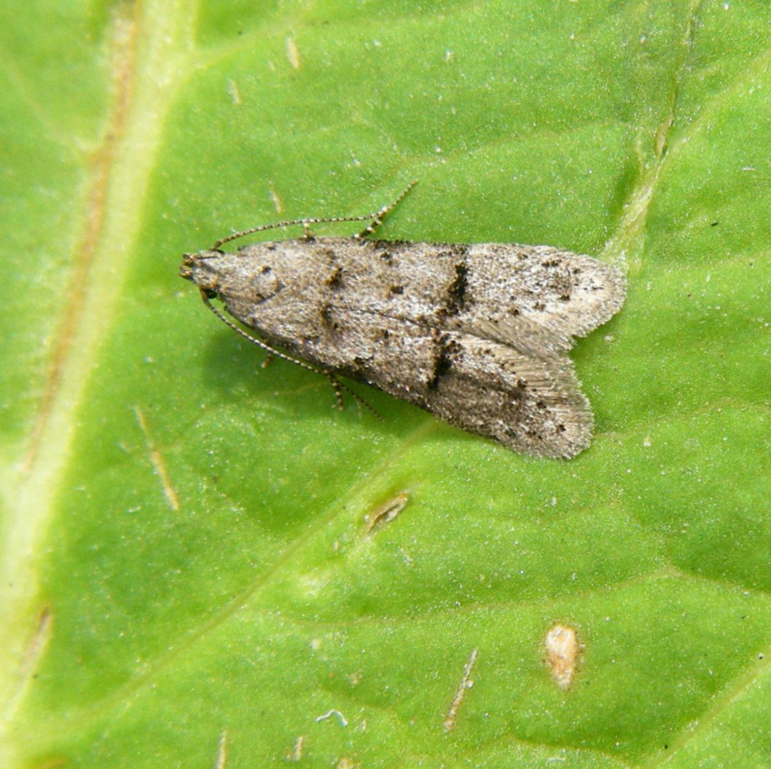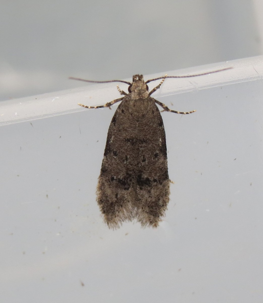 A fairly distinctive moth in the adult stage, this species has small blackish patches bordered by raised whitish scale-tufts, giving it a noticeably 'rough' appearance.