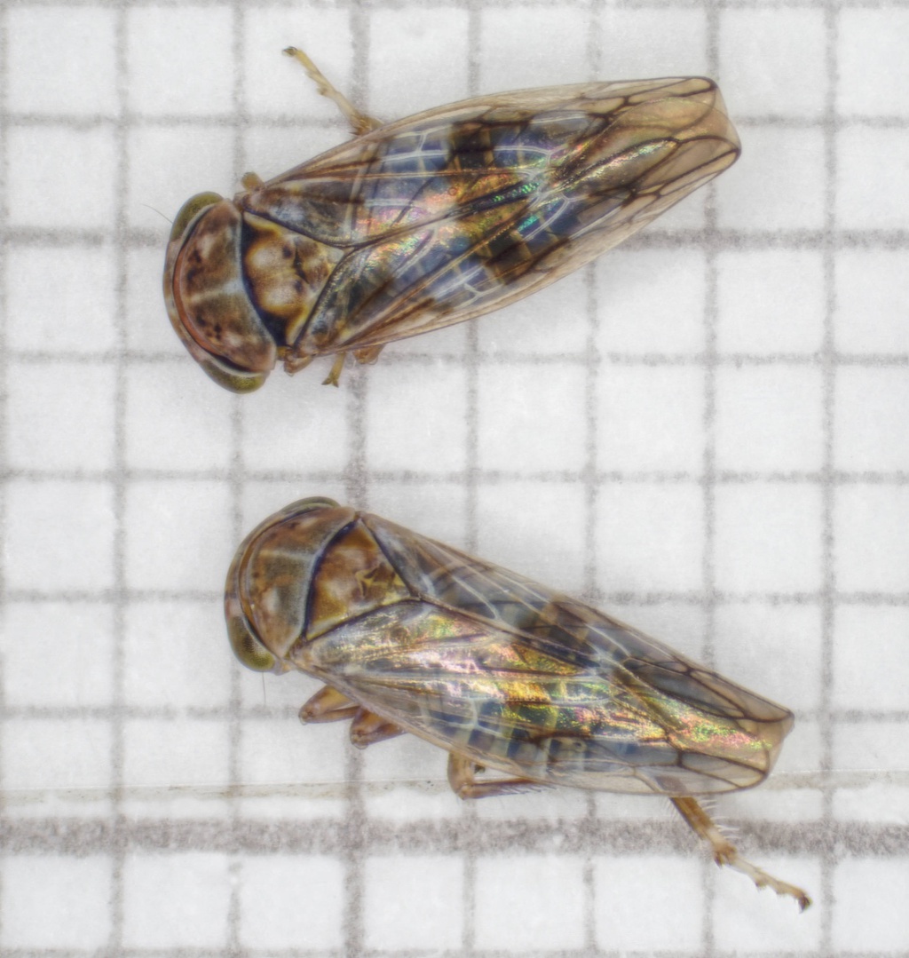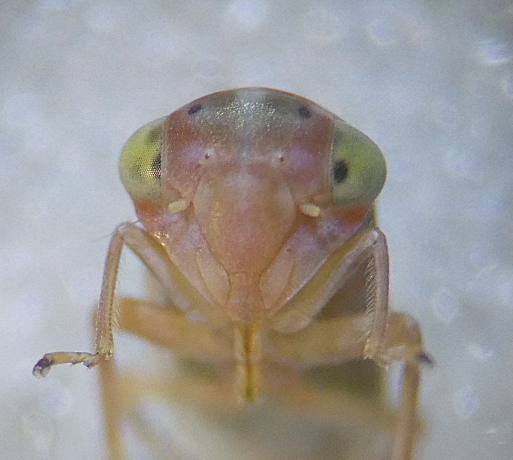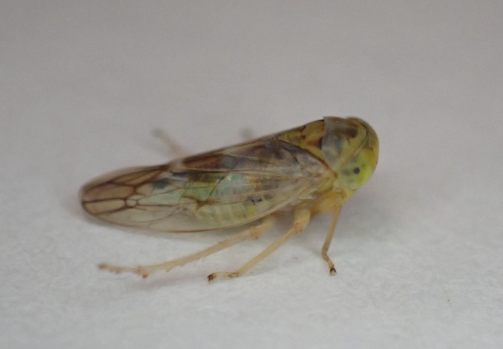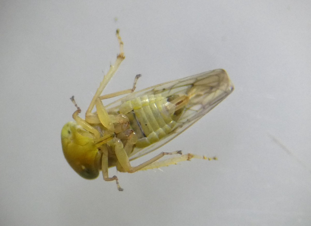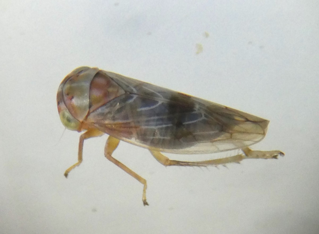 Length 4.5 to 5.5 mm. A pale greyish-yellow leafhopper associated with White poplars. There are two lighter bars across the forewing. Between these, the darker band does not reach the costal margin (the lower edge of the wing when the insect is viewed from the side)