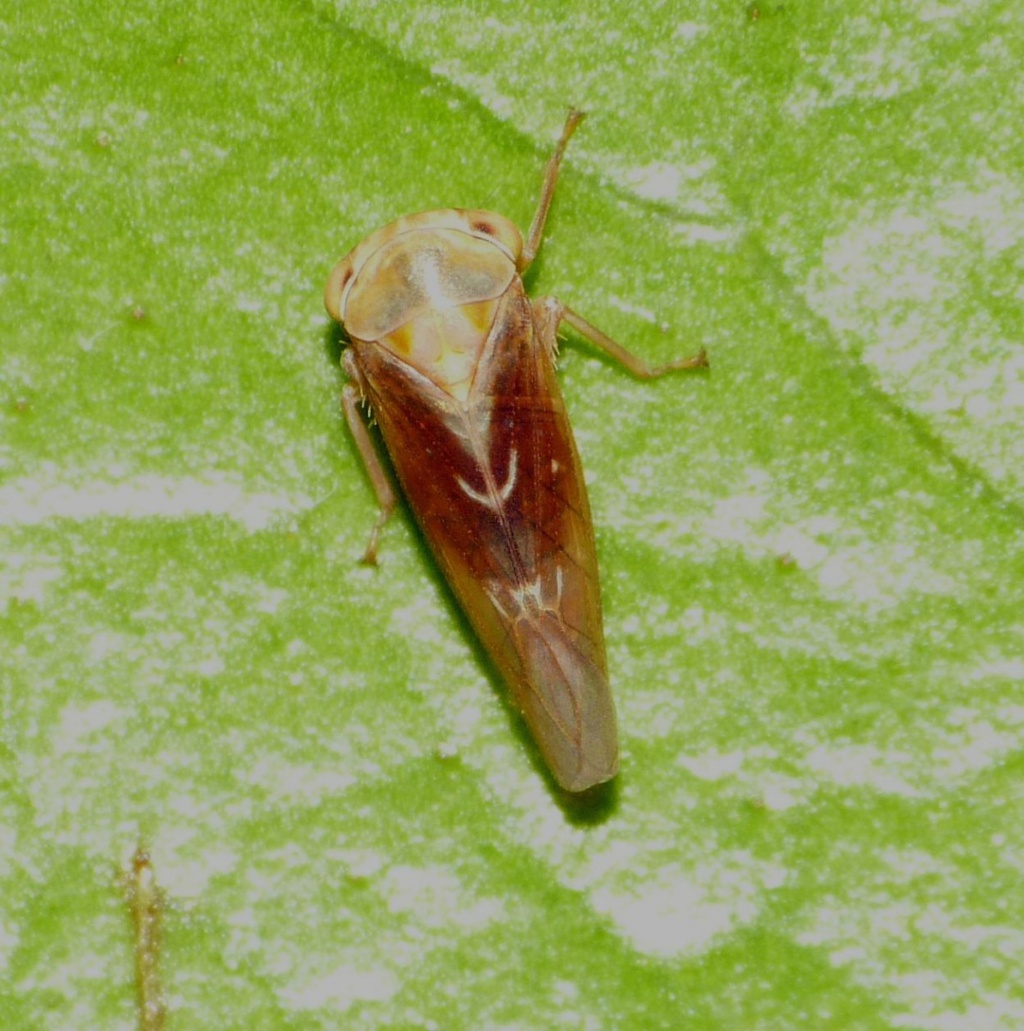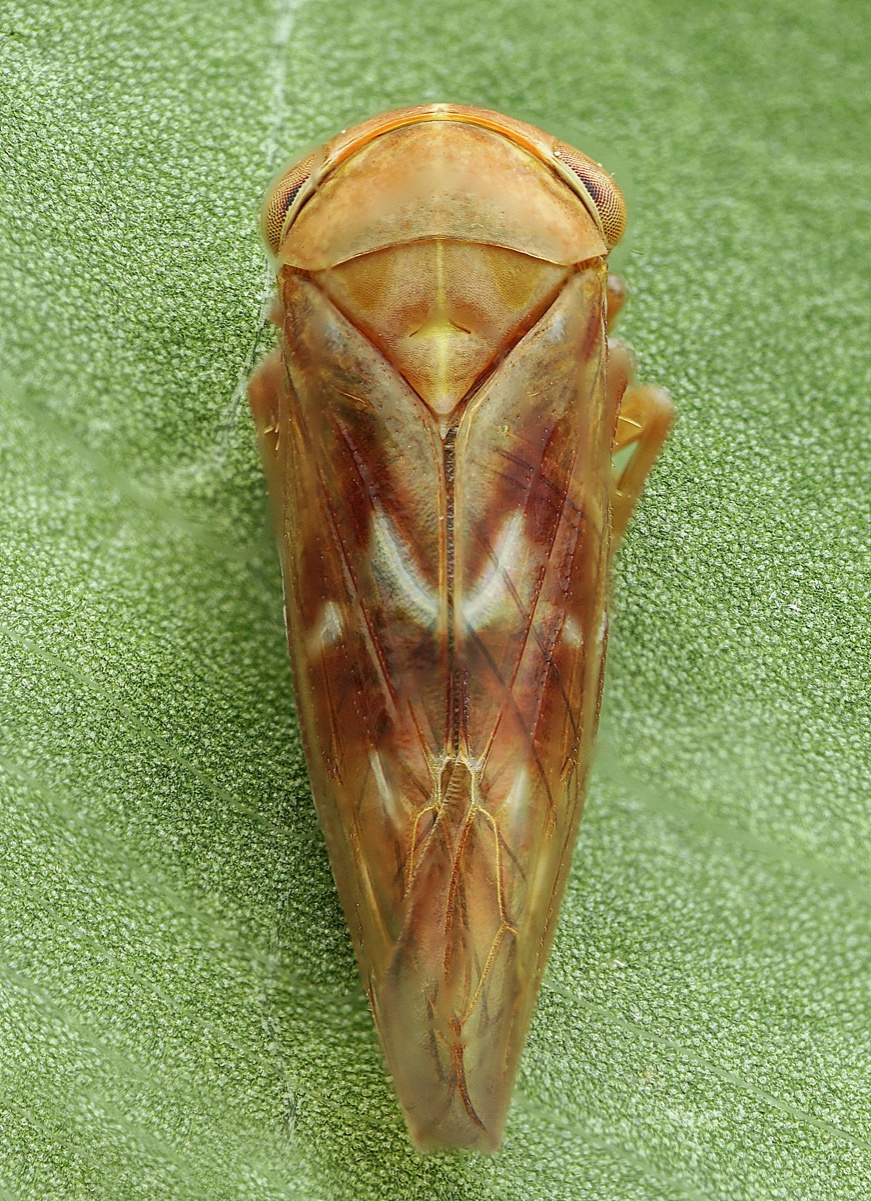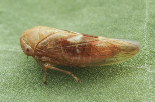 Length 4.5-6mm. A large orange/yellow-brown leafhopper associated with Black Poplar and its hybrids. It may have a pinkish tint or golden sheen. Usually a pale mid-line on the pronotum and top of the face.