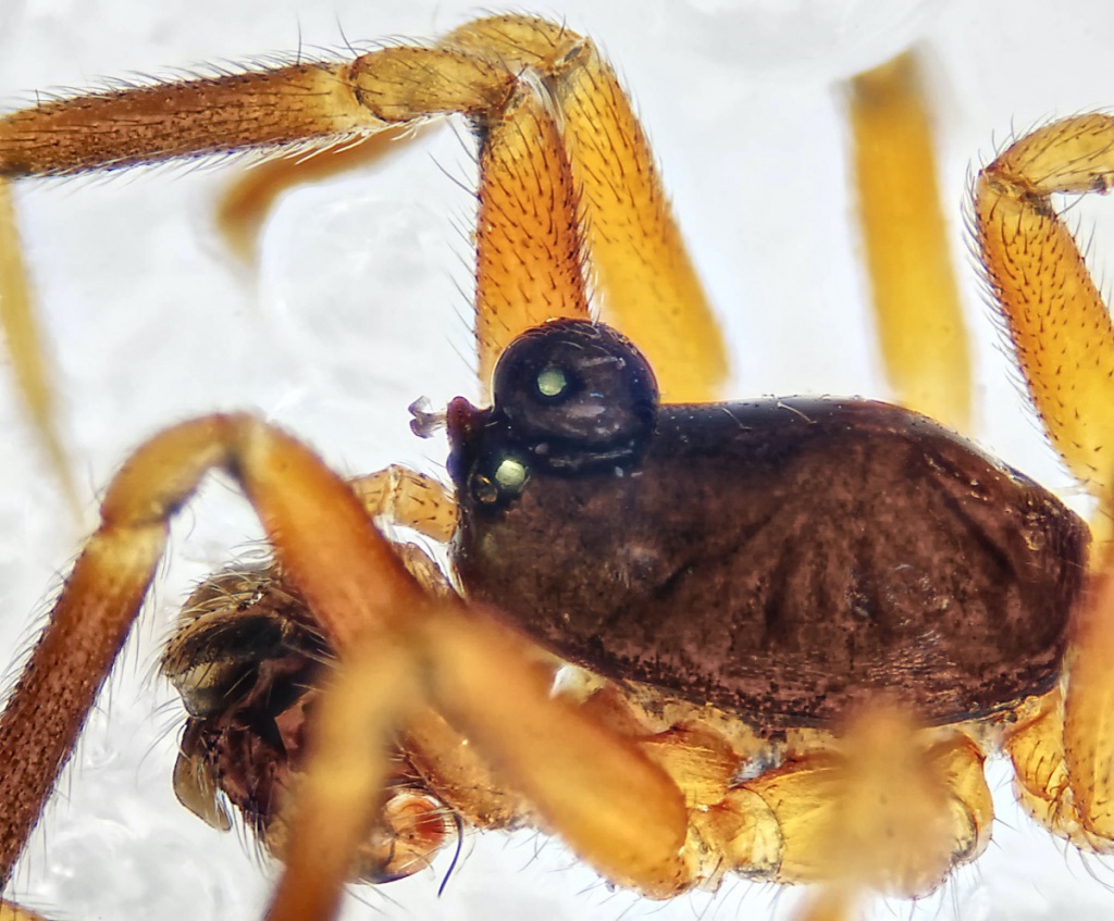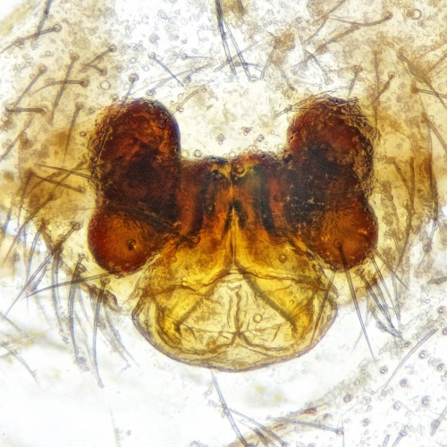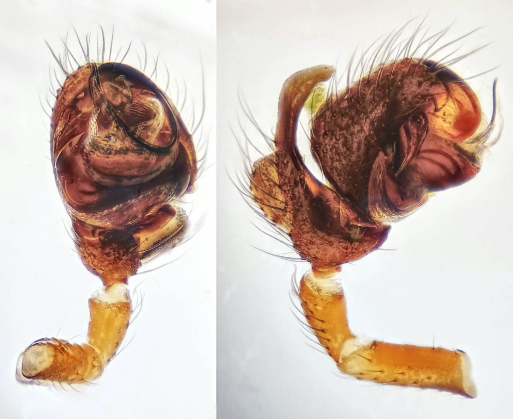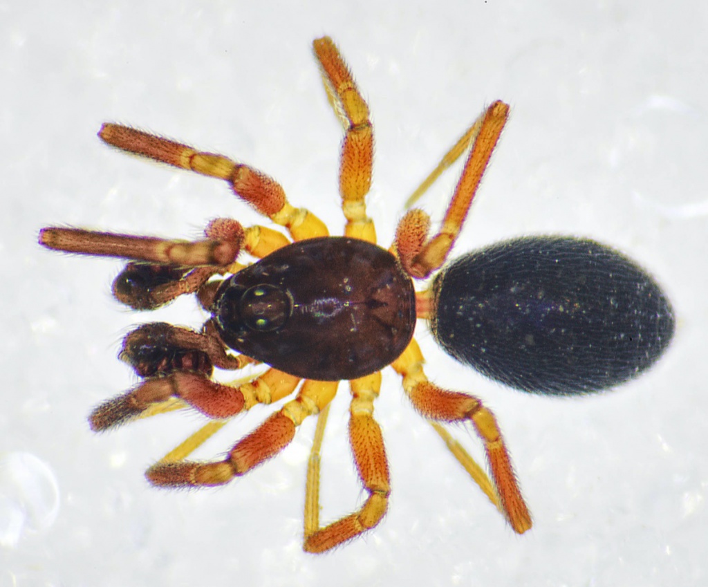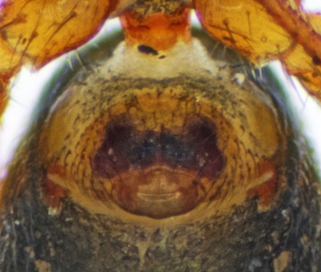 Males 1.75 to 2.3 mm, females 2.0 to 2.6 mm. Prosoma red-brown to dark brown, radial stripes and margin darker. Legs red-orange with dark tibia. Opisthosoma grey-black.