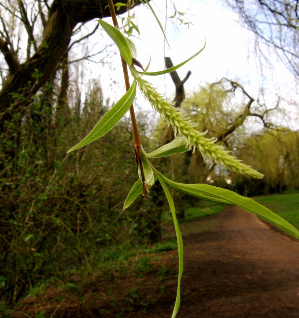 There is also Salix babylonica itself, not keyed out by Stace: he says ‘it differs from the other 2 weeping willows in its short (usually less than or equal to 2cm) and almost stalkless catkins . . it is rarely grown in the BI, but much mis-recorded for its hybrids . . . it is sometimes planted, usually as f. pekinensis ‘Tortuosa’ with very contorted twigs, leaves and branches’. This is very commonly planted in gardens as the 'Contorted Willow'.