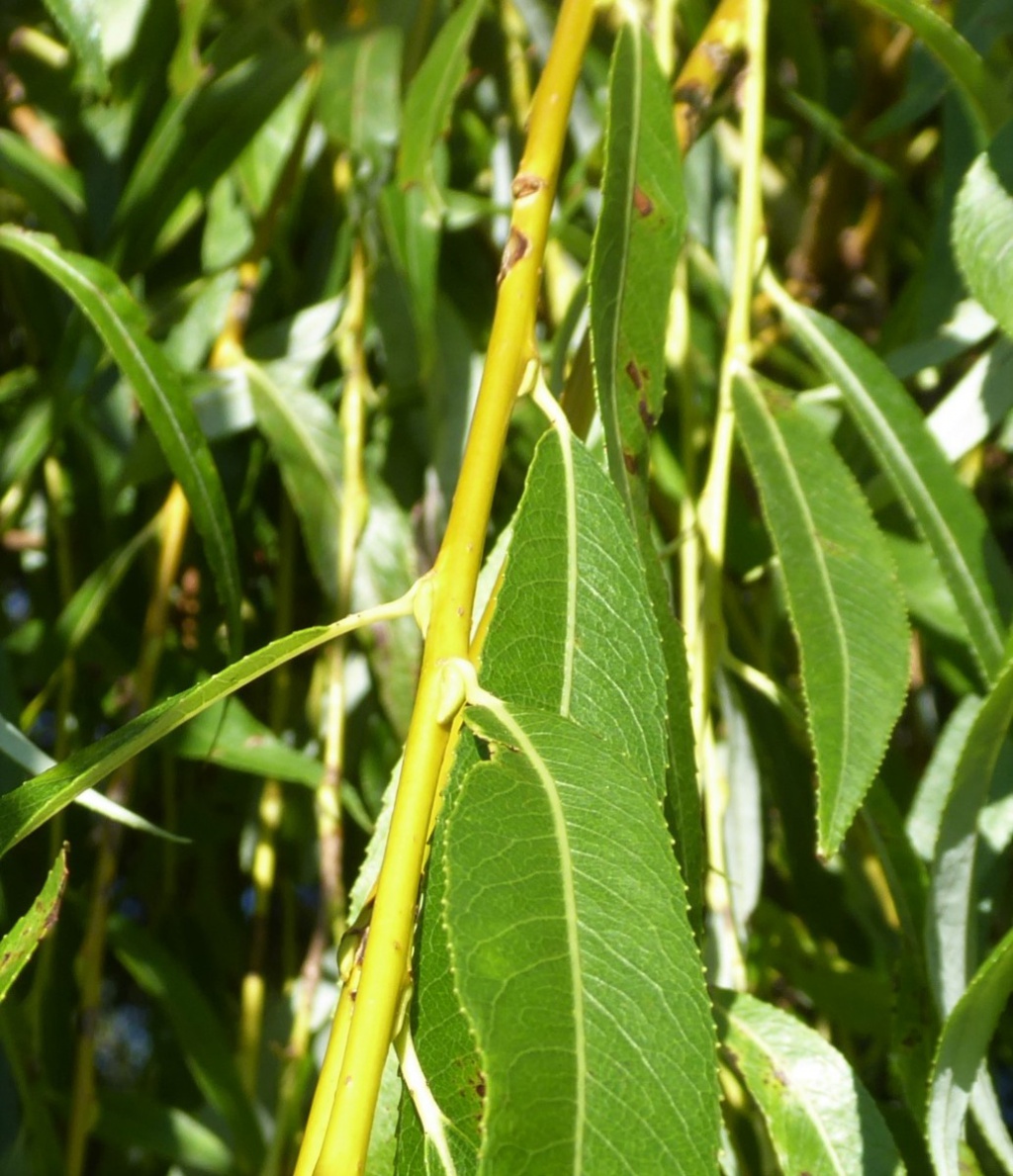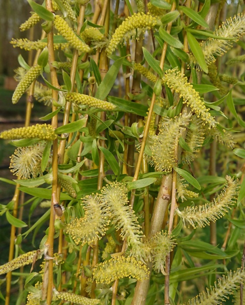 S sepulchralis has two varieties – var. chrysocoma has yellowish twigs; var. sepulchralis has brownish twigs.