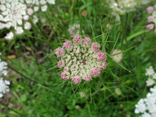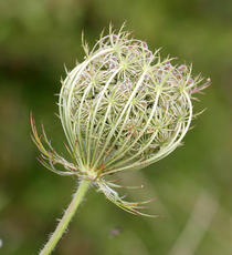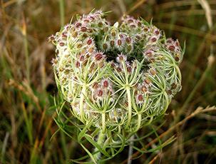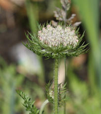 Bracts pinnately divided and appearing feathery; fruits flattened and with spiny ridges