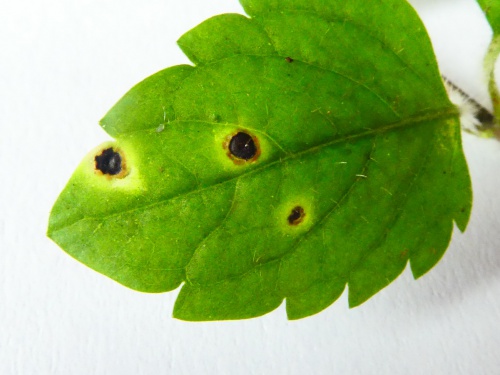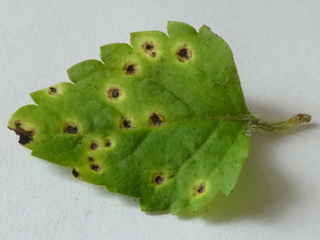 Wood Speedwell Rust (Puccinia veronicae) affects only Wood Speedwell (Veronica montana), causing galls. There is no host alternation, and only telia are produced. The telia are light cinnamon-coloured, often in circles, on slightly thickened brown leaf spots.