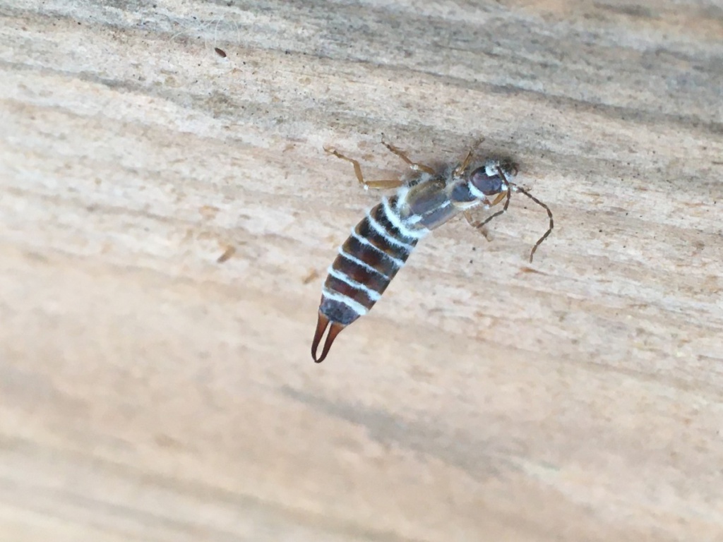 Zoophthora forficulae fatally attacks Earwigs (Forficula sp). The fungus emerges through the thin cuticular intersegmental parts of the host body.
