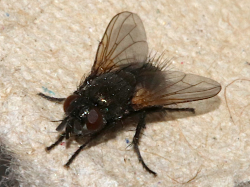Mesembrina meridiana (Noon Fly) lacks the bristles.