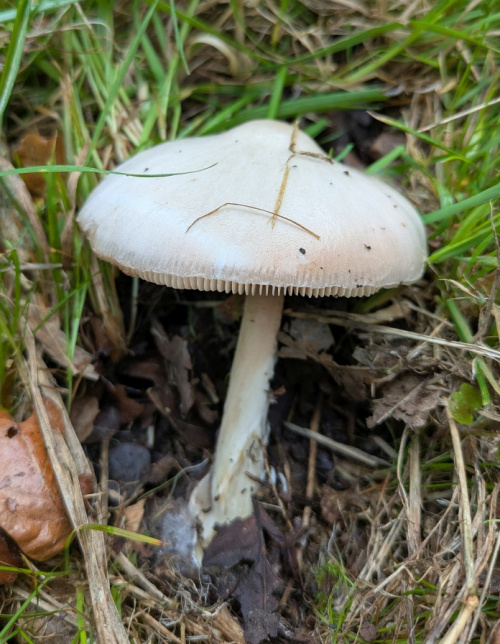 Photos from side, top down, and of gills. Ensure your photos show the sac-like volva at stem base.