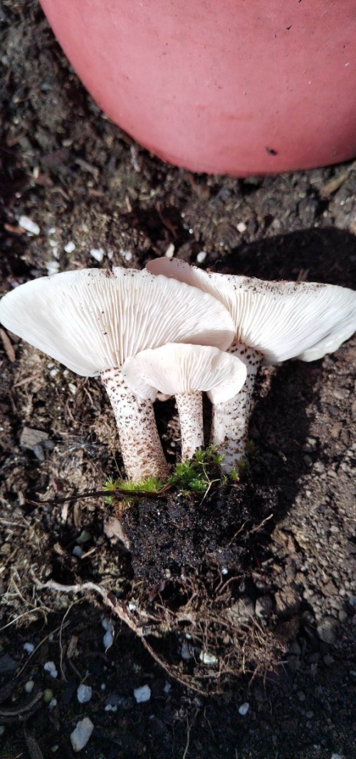 Cavaliers (Melanoleuca) are a large and difficult genus, mostly with flattened or umbonate caps and white warty spores.