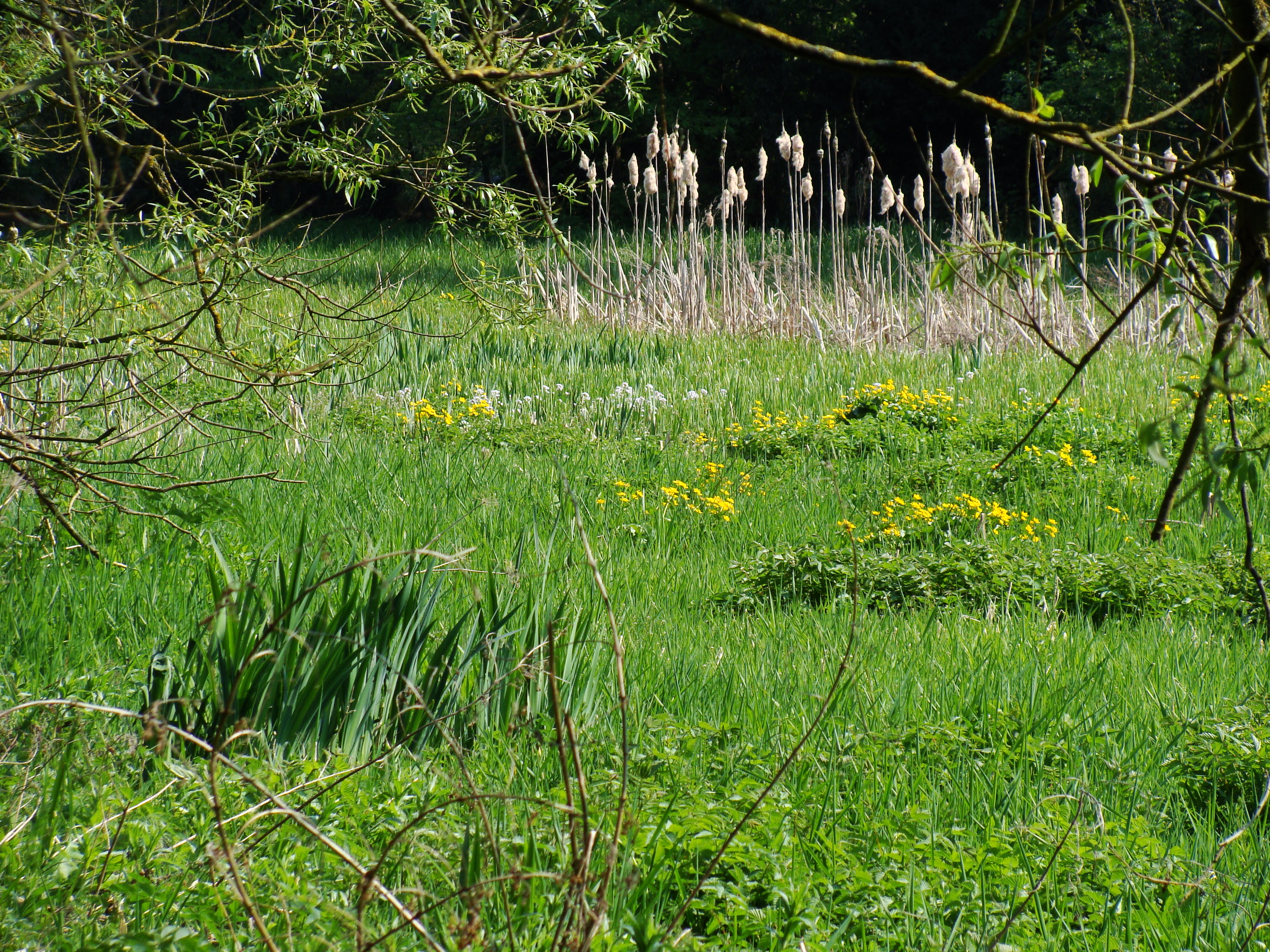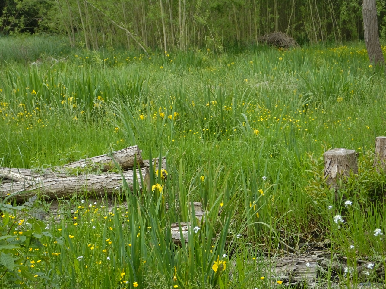 Although the majority of the site is wet woodland, several wildflower species of note can still be seen including the Yellow Flag Iris and Marsh Marigold. Several species of dragonfly have been sighted, and the area has previously been considered a prolific breeding site for common frogs (though this has lesssened in recent years).