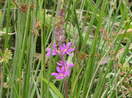 The river edge adds further interest and supports species such as Reed Canary-grass Phalaris arundinacea, Common Club-rush Schoenoplectus lacustris and Unbranched Bur-reed Sparganium emersum.